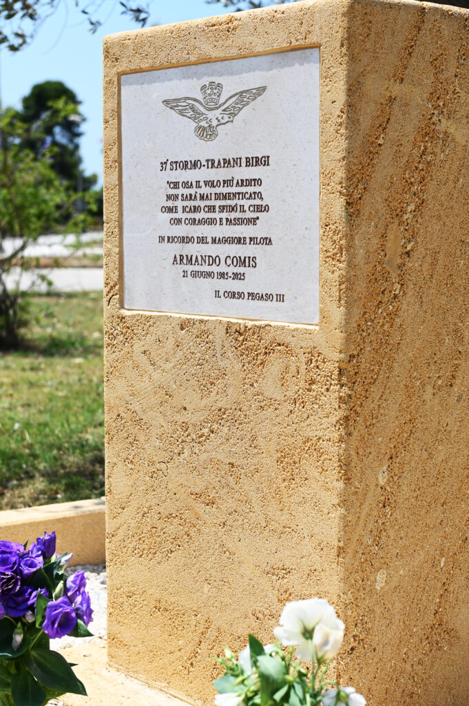 Sabato 21 Giugno 2025 ricorre il 40° anniversario dell’incidente aereo in cui perse la vita il nostro compagno di corso Armando Comis che si trovava da solo a bordo di un Macchi 326. Armando allora era capitano e capo corso del Pegaso III. L’incidente si verificò a circa 3 Km a nordest dell’aeroporto di Trapani, poco fuori dall’abitato di Guarrato. I funerali si svolsero in aeroporto dove vivevano anche i due figli e la moglie Antonella che era incinta del terzo.